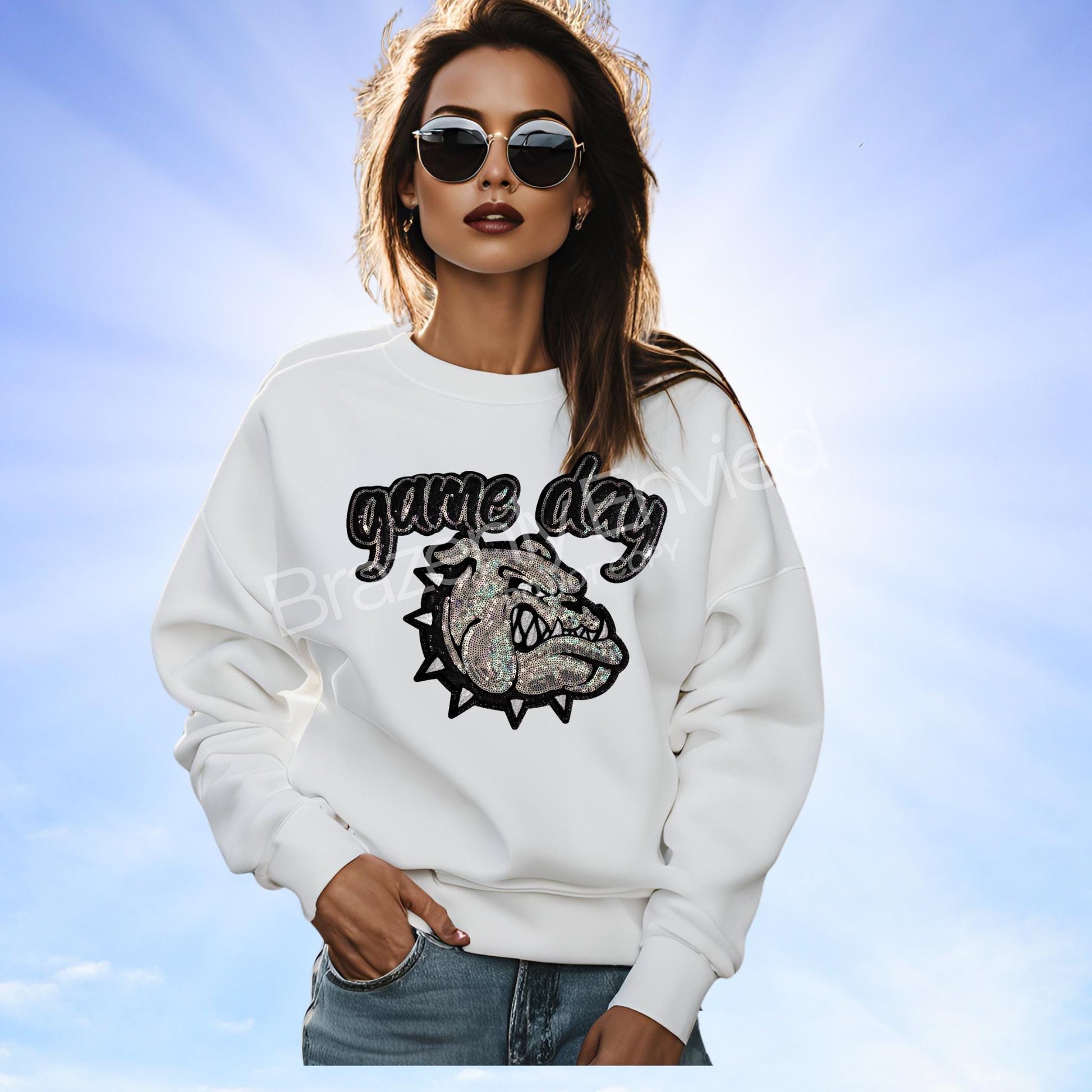 Bulldog Patch| Game Day Black Collar Patch| Iron On Patch| Sequins Bulldog Patch |Great Game Day Patch| Mascot Patch Great Sports Patch