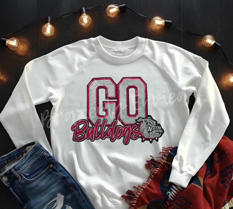 Bulldog Patch-Go Bulldogs SILVER and Red Sequins with Black Glitter Backing Iron On Applique