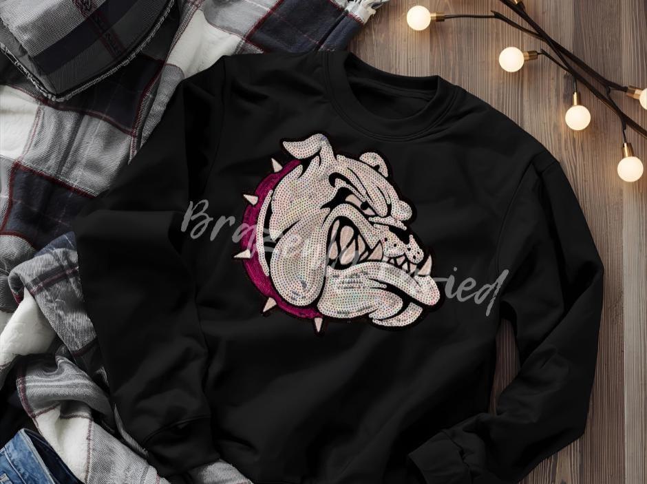 Bulldog Patch | Iron-On Applique | Sequins with Maroon Collar