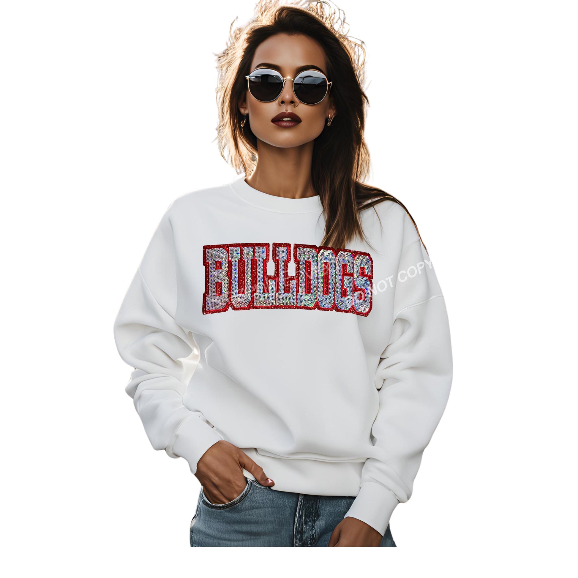 Sequin Bulldogs Patch Silver Sequins with Red Glitter Backing DIY Iron On Applique Sports Apparel