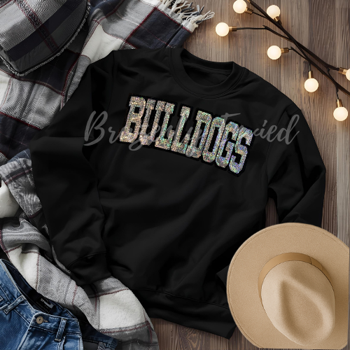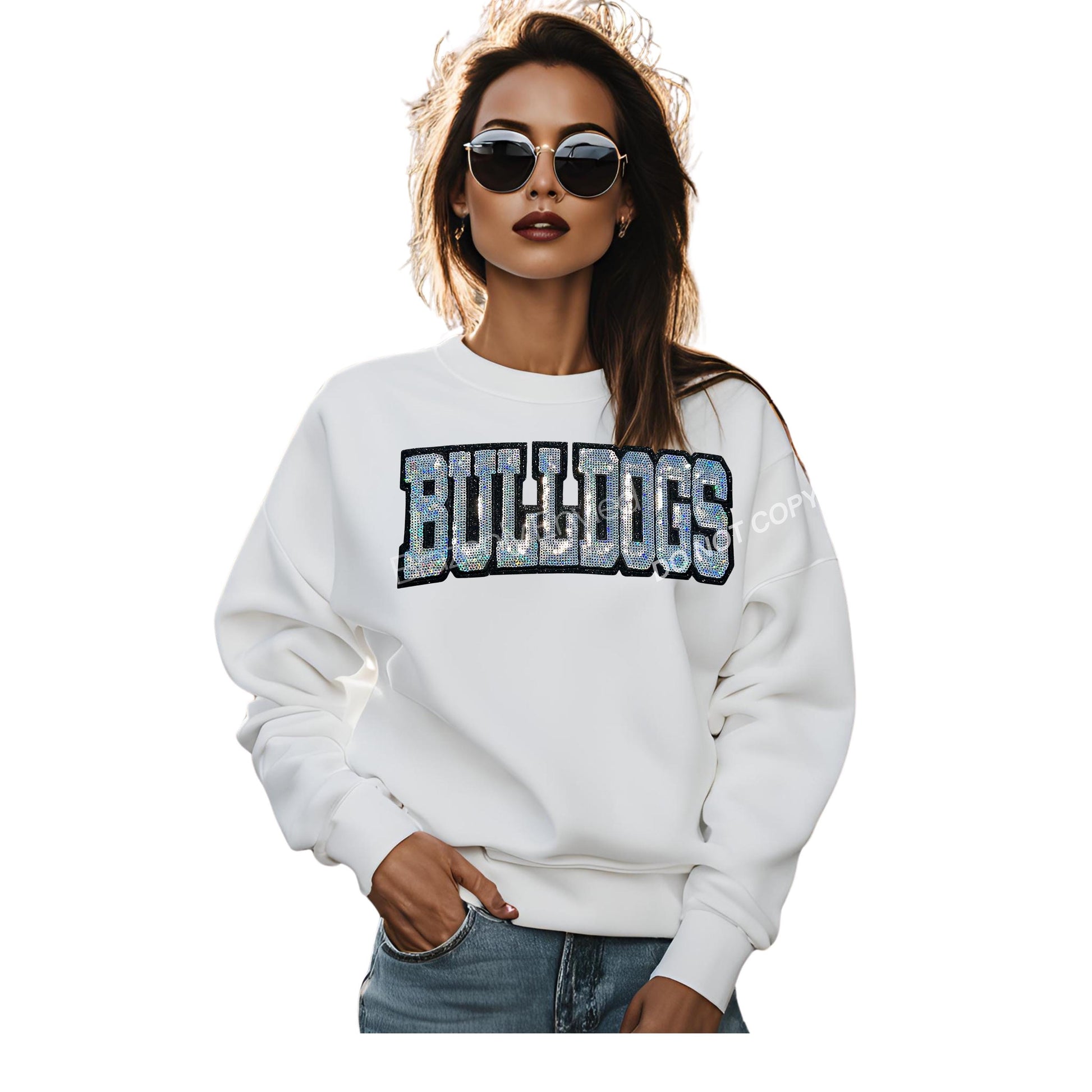 Bulldogs Patch Silver Sequins with Black glitter backing DIY IRON On Sequin Applique Trendy Patch