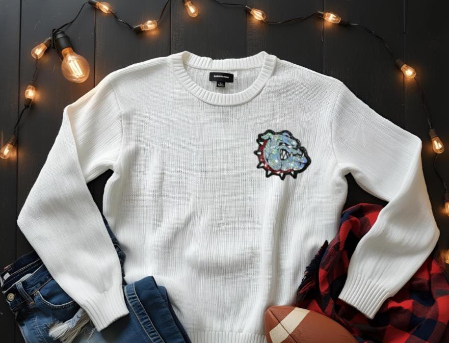 Bulldog Patch | Silver Sequins BULLDOG Patch with RED Sequins Collar | Hat Patch | DIY | Iron On | Game Day Patch