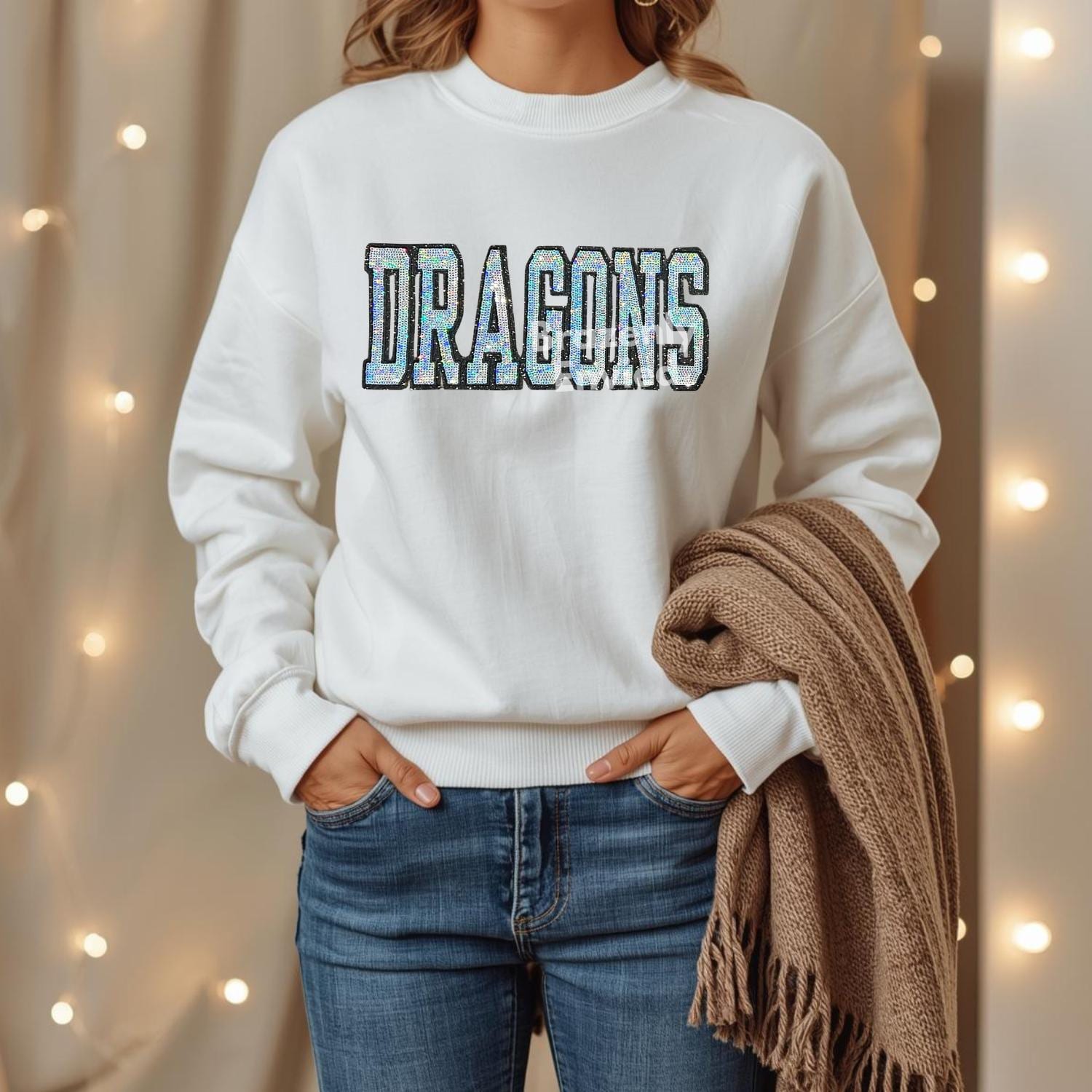 Dragons Patch| Iron On Patch |Sequins WILDCATS Patch |Great Game Day Patch| Mascot Patch | Great Sports Patch-Silver/Black