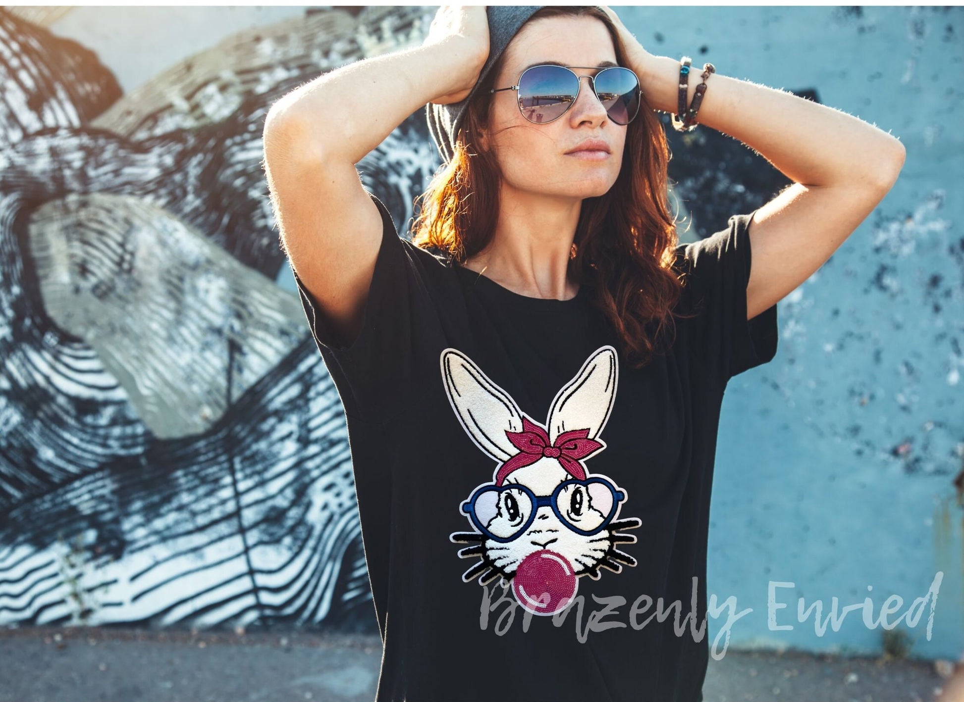Easter Patch Easter Chenille/Sequins Smart Blue Glasses Bubble gum Blowing Bunny Great for Easter Shirt