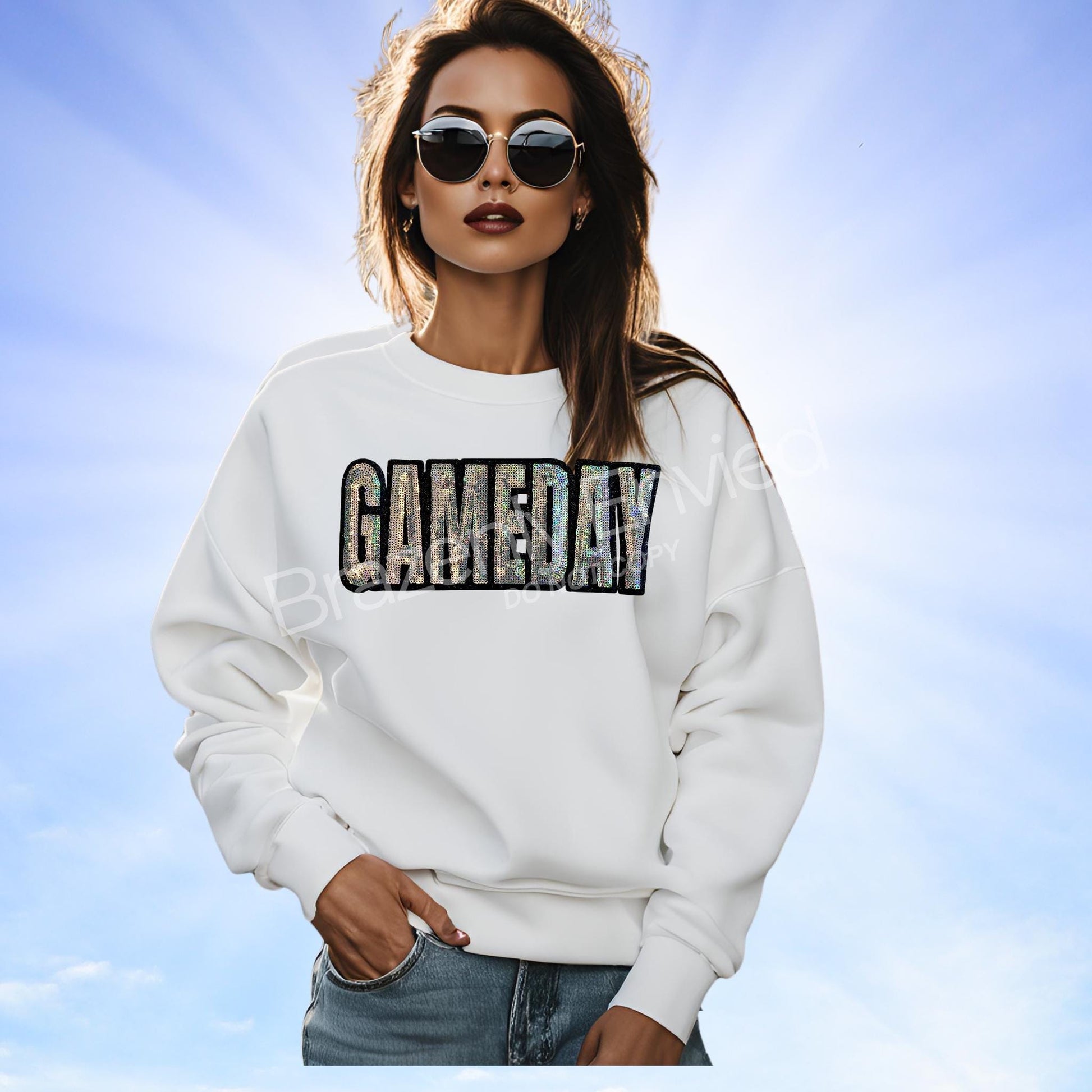 Game Day Patch| Iron On Patch |Sequins Gameday Patch |Great Game Day Patch| Mascot Patch | Great Sports Patch-Silver/Black