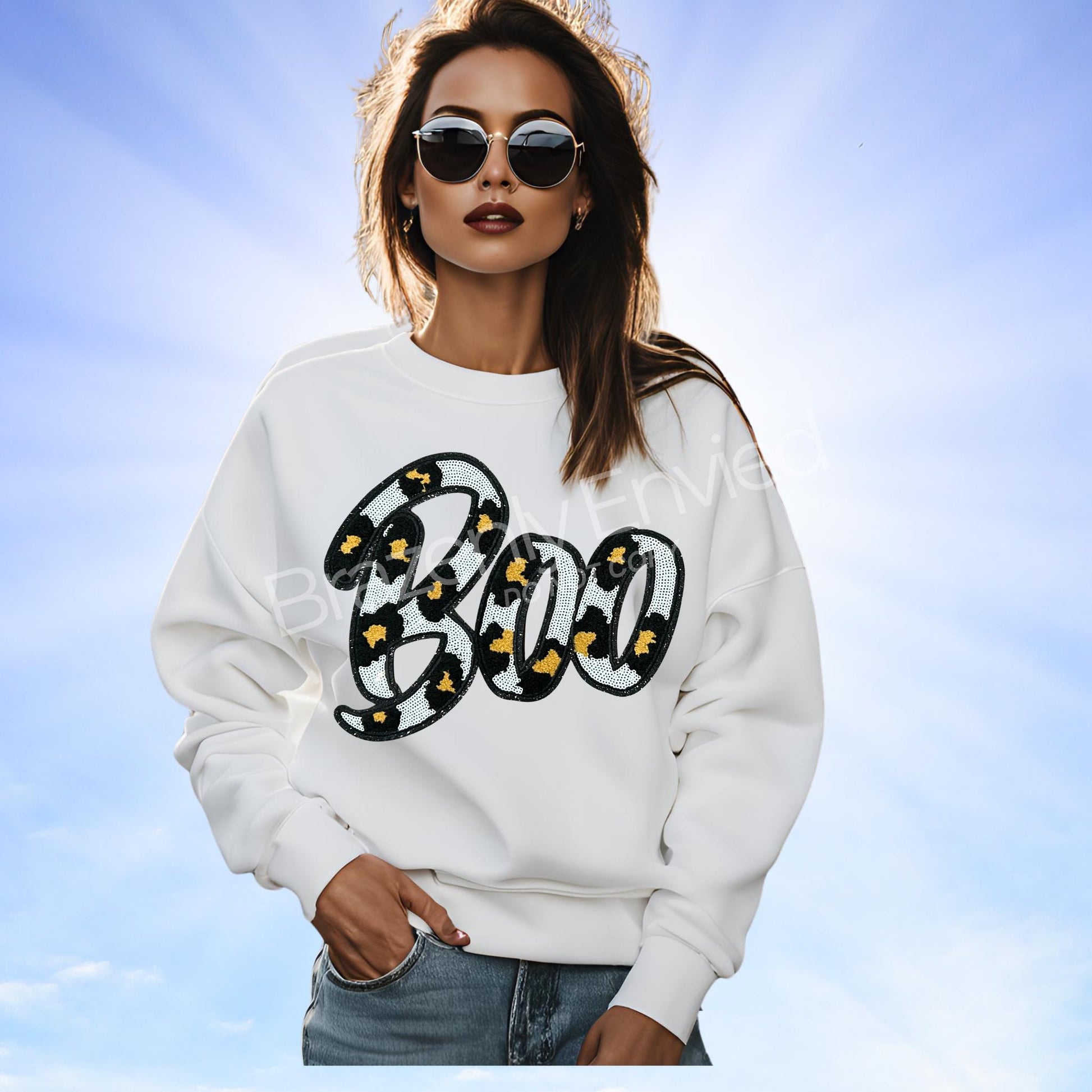 Be the One who is sporting the New Custom Boo Ghost Leopard Print Sequins and Chenille