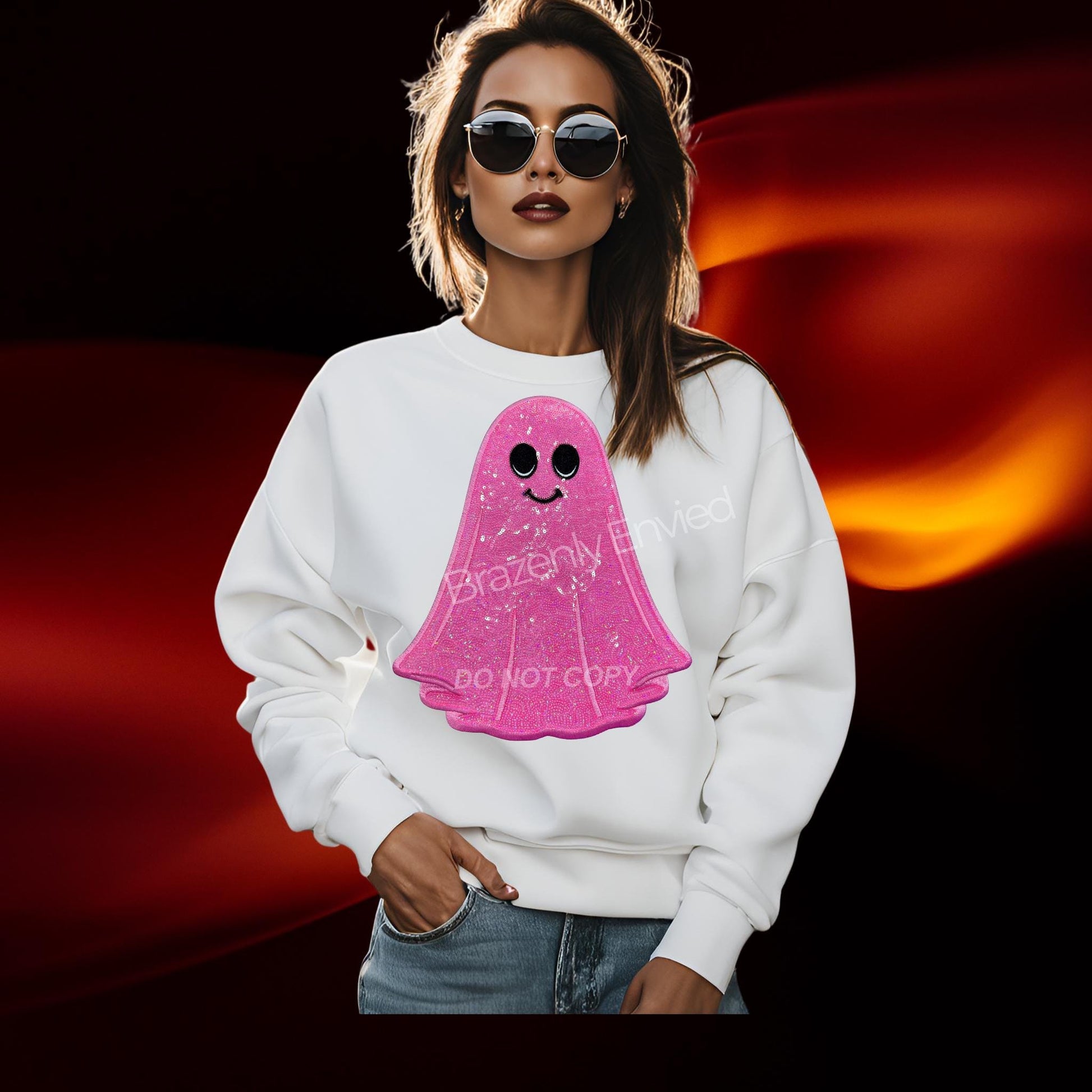 Immediate ship ghost Pink Patch - 11.75 in. tall x 9.75 in. wide - one single patch comes with adhesive backing that is heat activated, recommended to apply with a heat press. Can be used on apparel and bags.