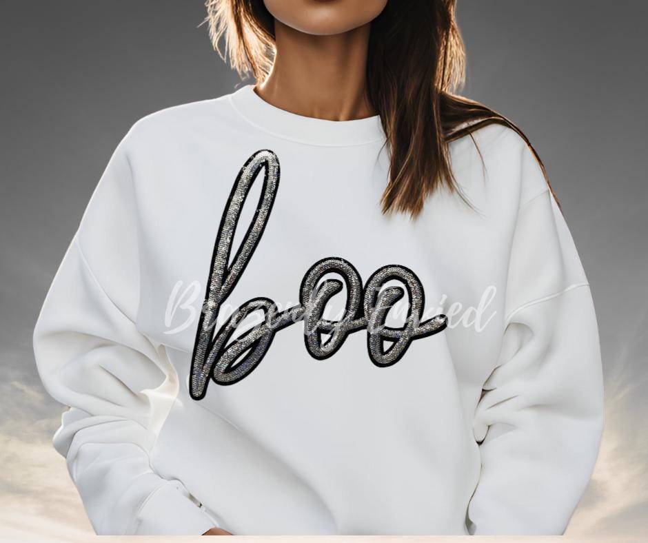 Immediate ship Sequins Boo Patch - 11" tall x 11" wide - one single patch comes with adhesive backing that is heat activated, recommended to apply with a heat press. Can be used on apparel and bags.