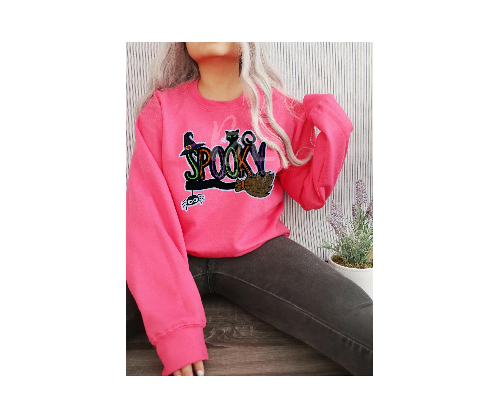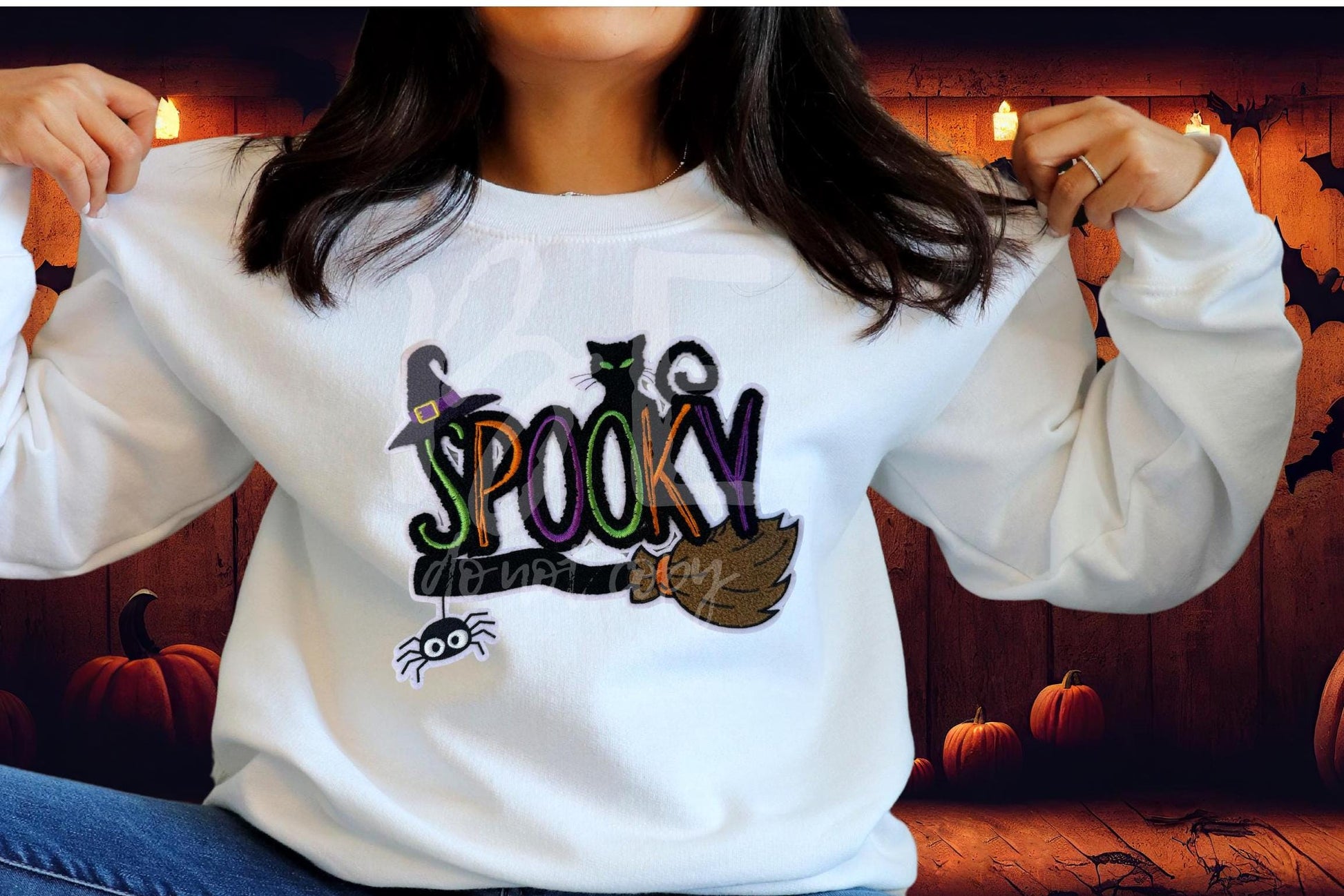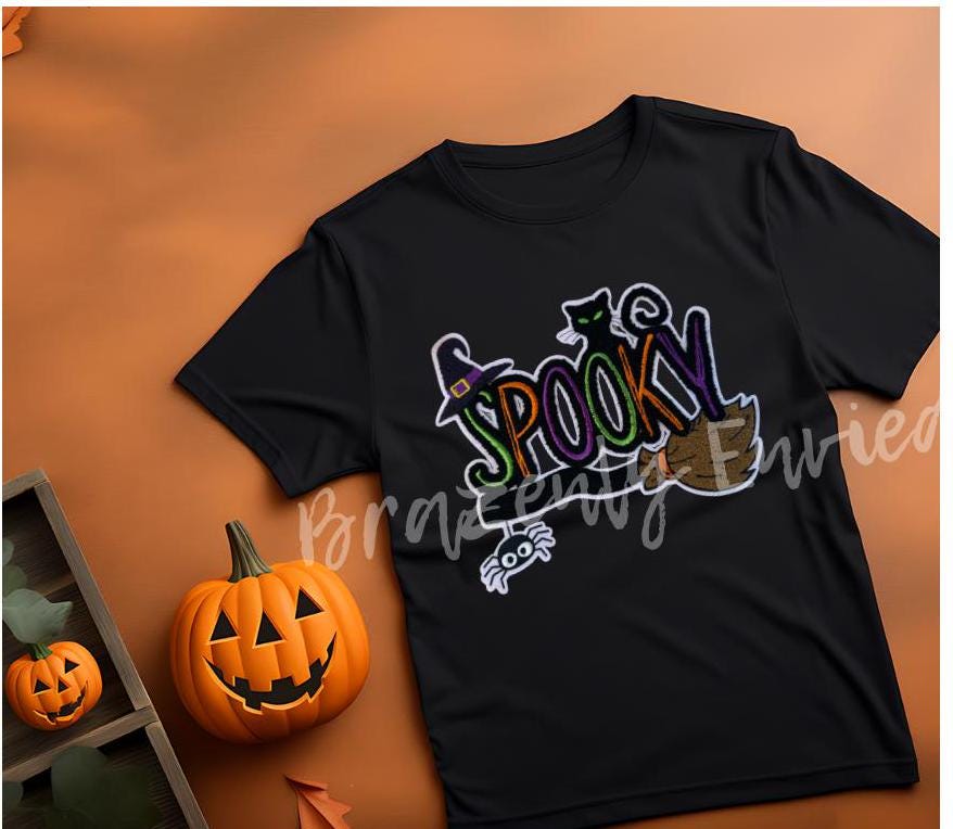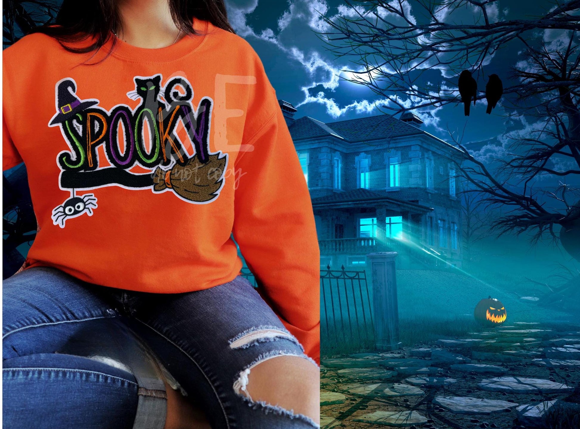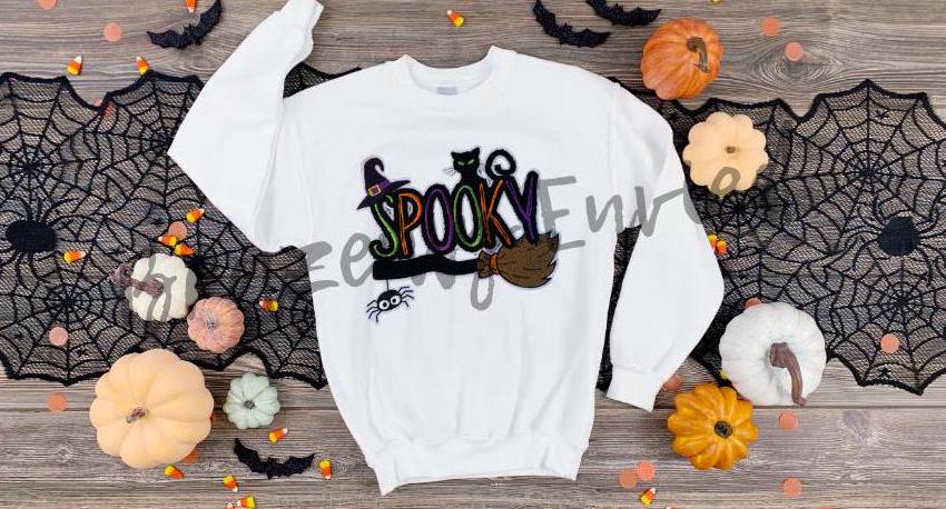 Spooky Chenille @ 9 in. tall x 11 in. wide - one single patch comes with adhesive backing that is heat activated, recommended to apply with a heat press. Can be used on apparel and bags.
