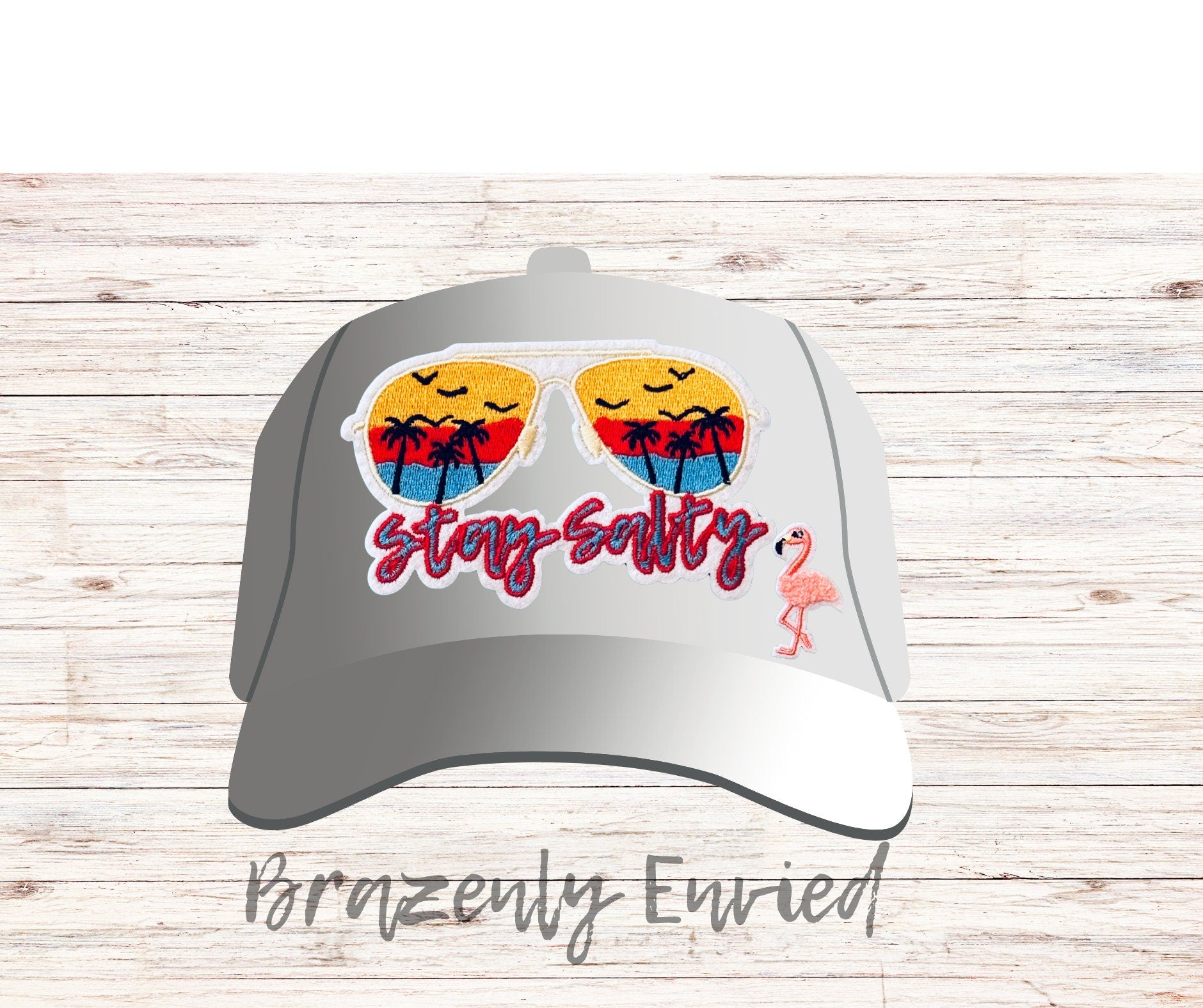 hat patch Stay Salty Beach embroidered Patch size 2.75"H x 4.5"W great for jackets and hats very detailed