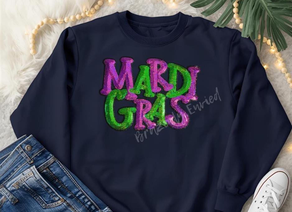 Mardi Gras Sequin Patch - Heat Press Adhesive (11.5"Wx9"H)