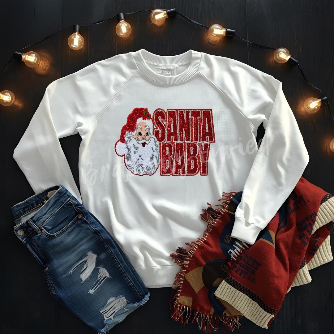 Santa Baby Patch | Chenille-Sequins Christmas Iron On Patch | Holiday Applique