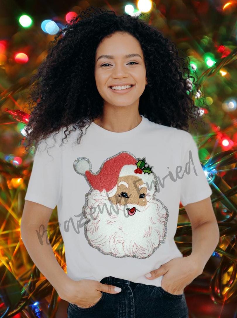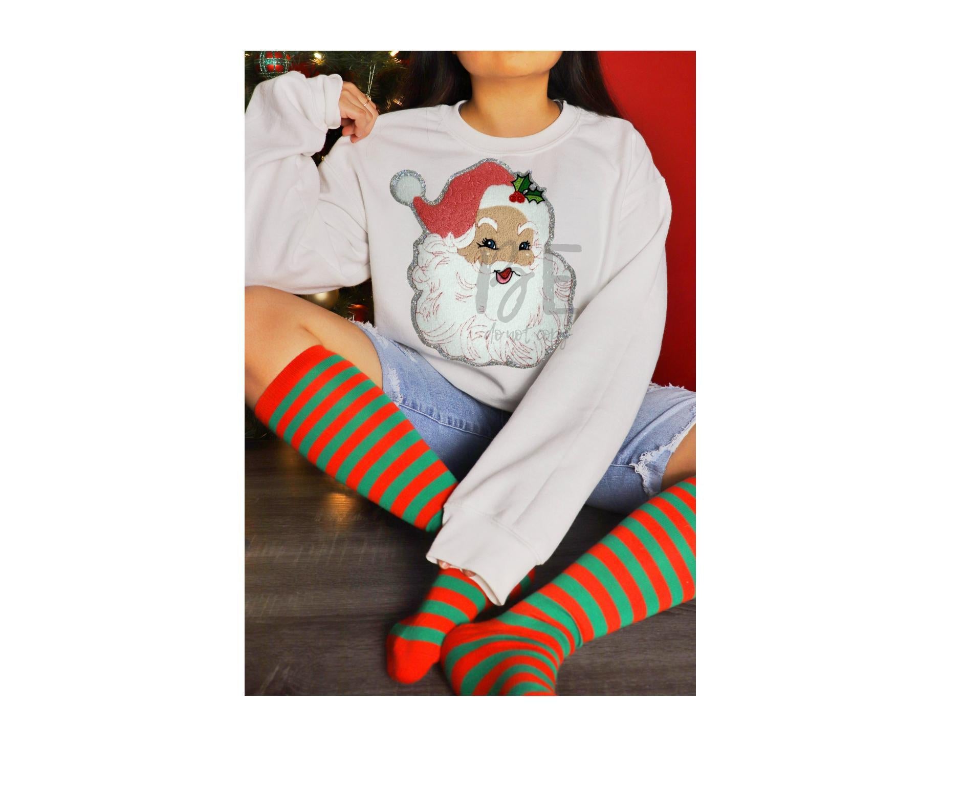 Immediate ship Chenille Santa Patch - @ 12"H x 11"W- one single patch comes with adhesive backing that is heat activated, recommended to apply with a heat press. Can be used on apparel and bags.