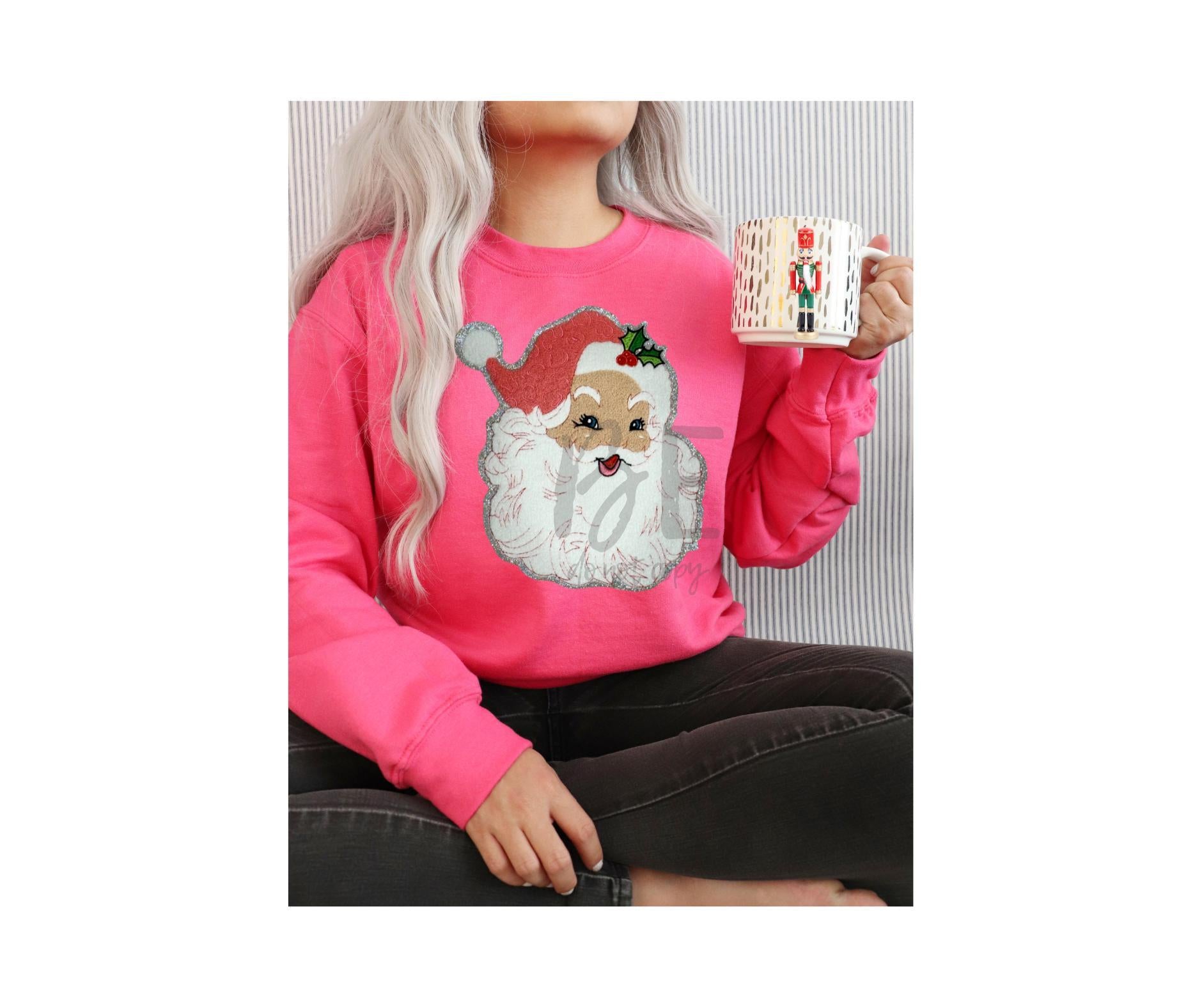 Santa Patch Chenille | Pink Hat Santa Chenille Patch | Vintage Santa Patch | Iron On Ready | Great for Christmas Sweatshirt Santa Patch