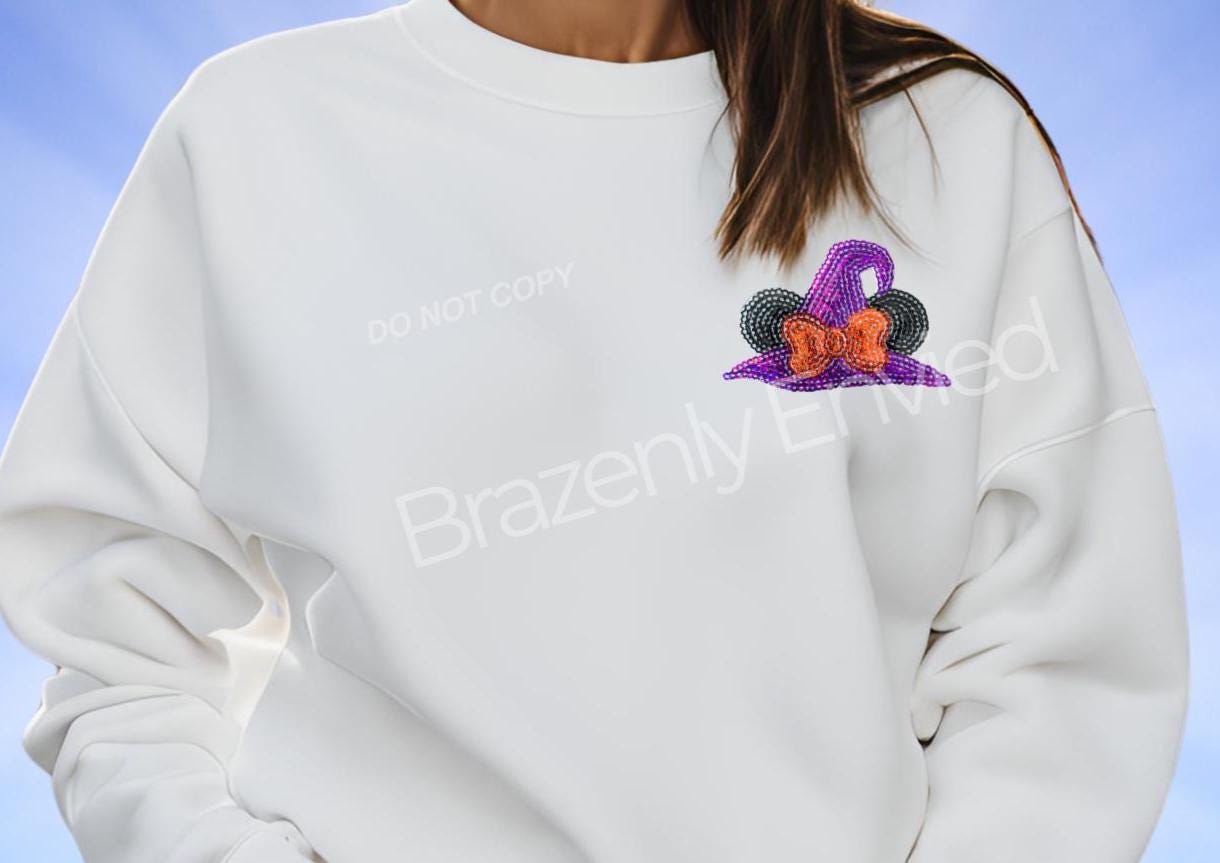 Immediate ship 1-Sequins witch hat Patch - @3.25 in wide x 2.25 in. tall - one single patch comes with adhesive backing that is heat activated, recommended to apply with a heat press. Can be used on apparel and bags.