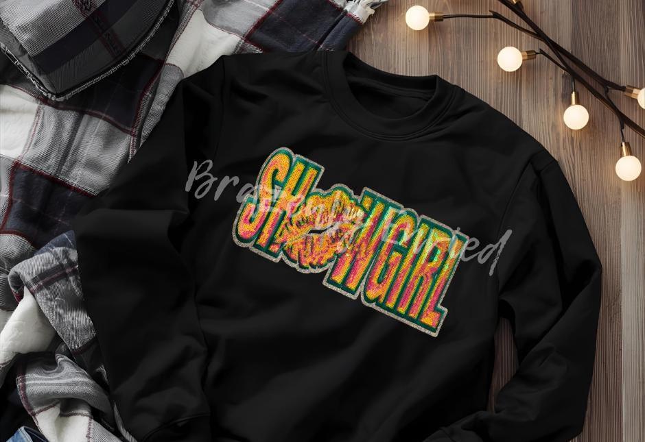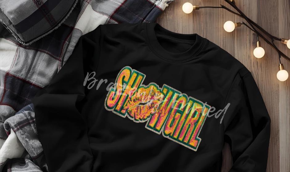 Immediate ship Showgirl Patch 11.25W x 5.25H| Iron-On Applique | Red Sequins Script Patch - one single patch comes with adhesive backing that is heat activated, recommended to apply with a heat press. Can be used on apparel and bags. DO NOT COPY or Replicate this Patch-