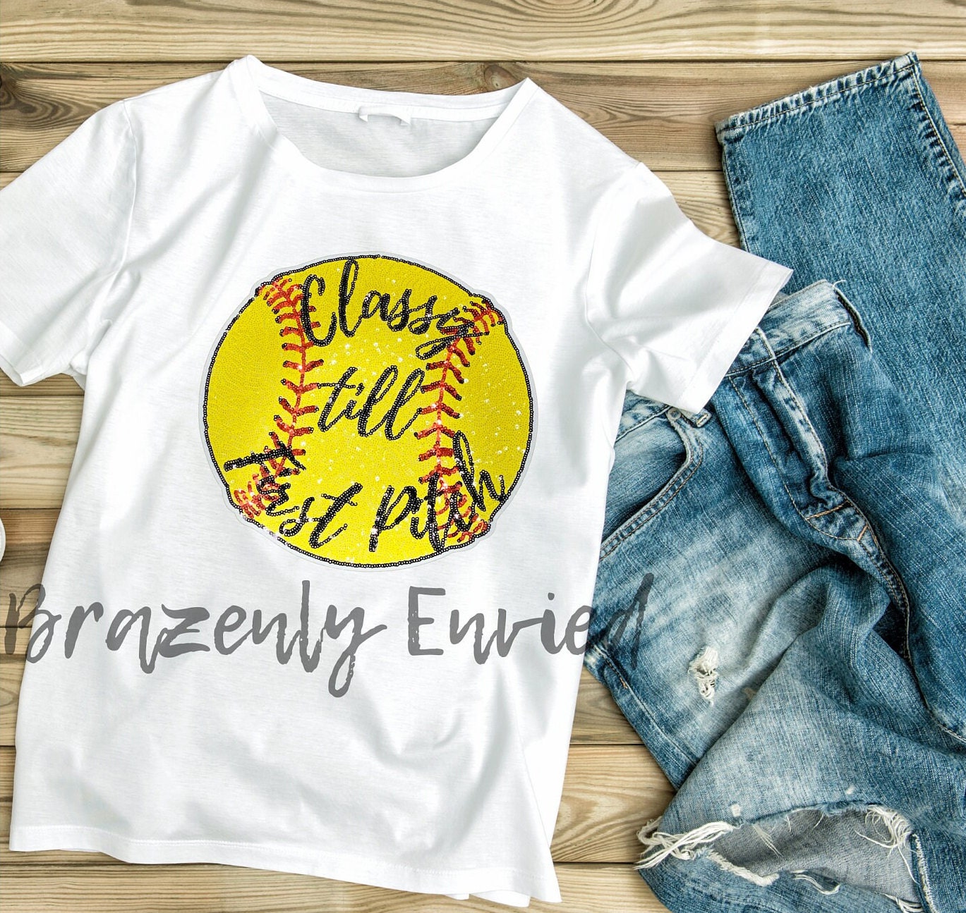 Softball Shirt Game Day Ready New Softball Sequins Patch Great gift "Classy Till First Pitch"Great Softball Mamas Great Sports Patch