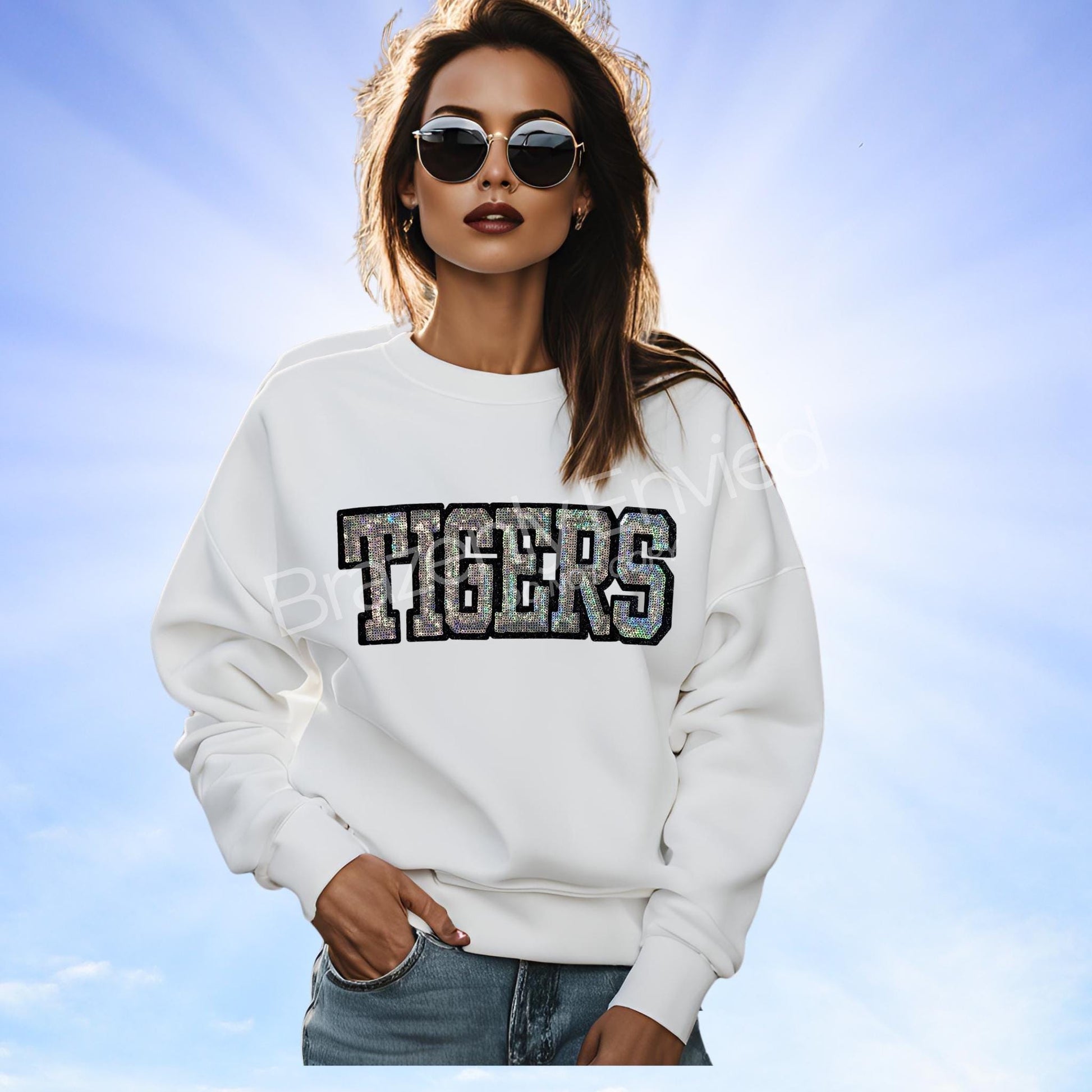 Tigers Patch| Iron On Patch |Sequins Tigers Patch |Great Game Day Patch| Mascot Patch | Great Sports Patch-Silver/Black