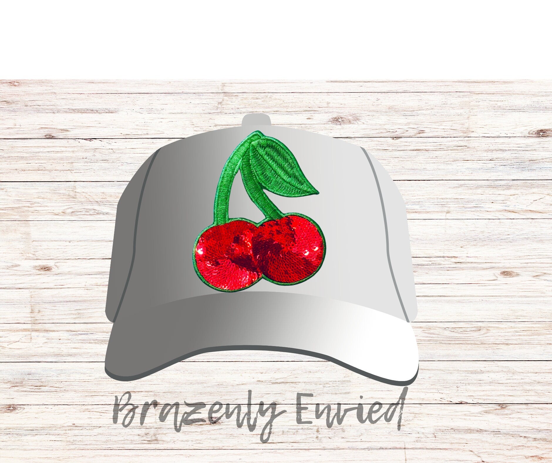 Trucker hat patch Cherries sequins and embroidered 3.5 inch H x 3 inches W great detail in the sequins very shiny