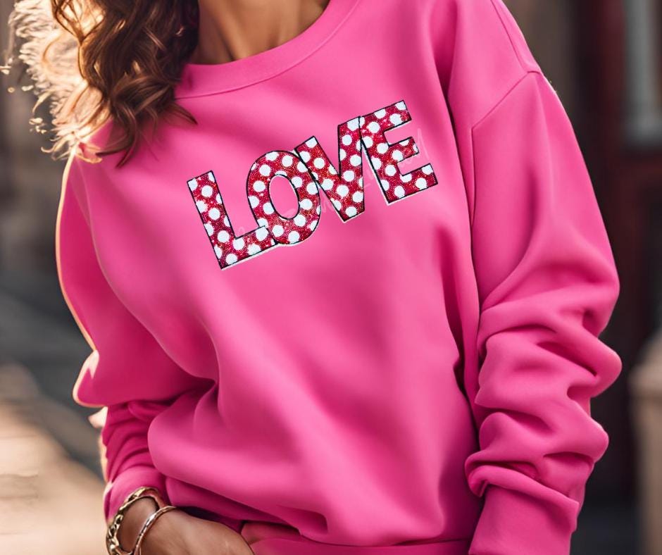 SEQUIN/CHENILLE /Embroidery Patches - you get 1 single sequin Love Patch @ 10.75"W that comes with adhesive backing that is heat activated, recommended to apply with a heat press. Can be used on apparel and bags