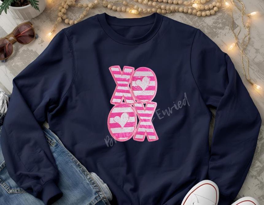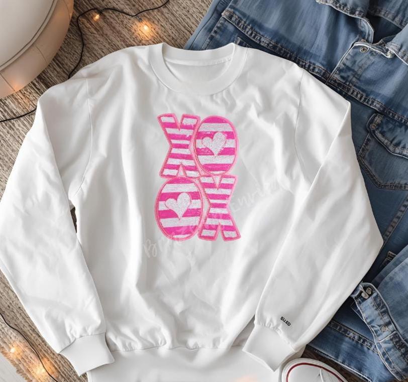Valentine XO Patch: Pink Sequin Iron-On Applique (11x8)